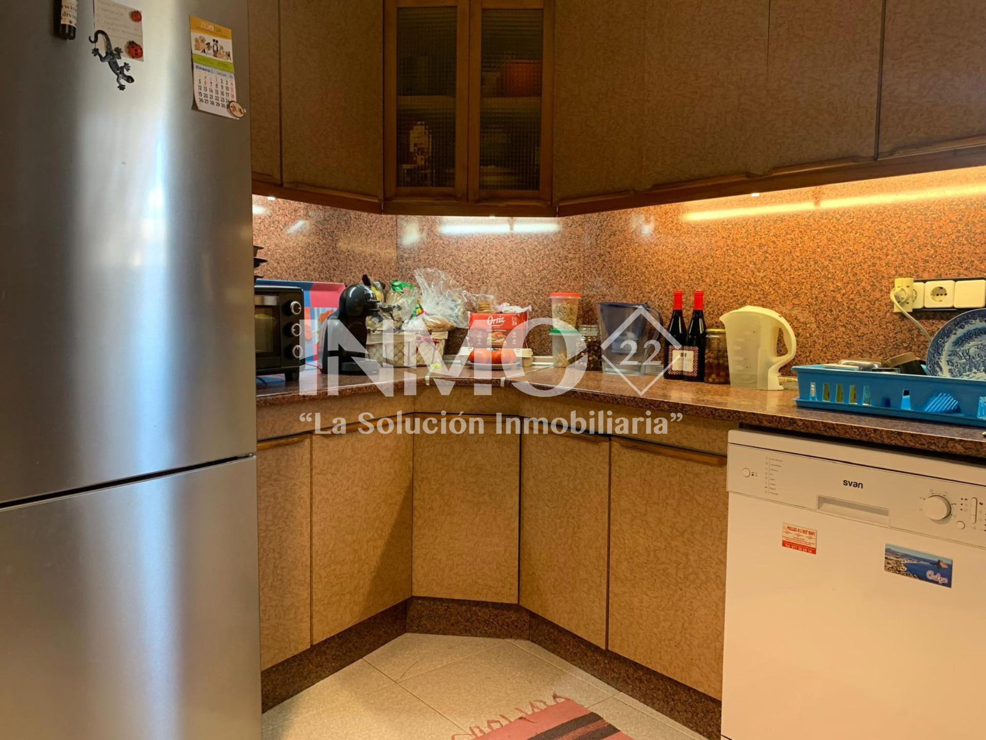 L'habitatge compta amb tres dormitoris ben dimensionats i dos banys complets, pensats per garantir confort i funcionalitat. La cuina disposa d'un rentador independent, facilitant l'ordre i l'organització del dia a dia.