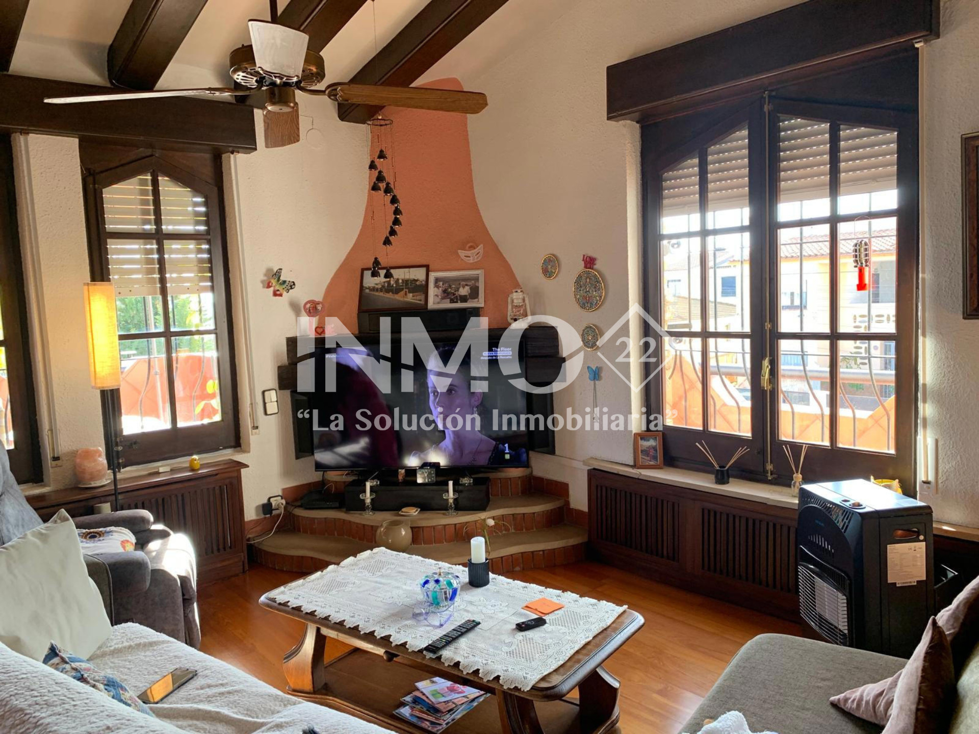 Der Salon-Speisesaal ist geräumig und gemütlich, mit Kamin, was ihn zu einem idealen Raum für Familientreffen oder Momente der Ruhe macht. Von den Haupträumen aus gelangt man in die Außenbereiche, wo ein privater Pool hervorsticht, der perfekt ist, um sich zu entspannen und die Sonne in völliger Privatsphäre zu genießen.