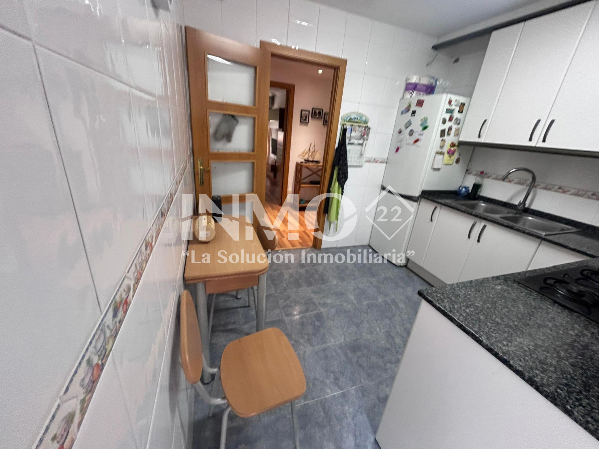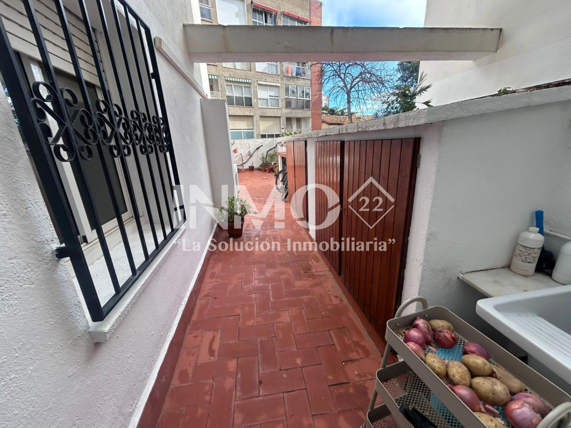 Die Küche, praktisch und gut verteilt, hat direkten Zugang zur Terrasse und erleichtert den Alltag und bietet vielfältige Möglichkeiten zur Aktualisierung und Gestaltung. Das vollständige Badezimmer befindet sich in gutem Zustand und ermöglicht Anpassungen nach dem Stil des neuen Eigentümers.