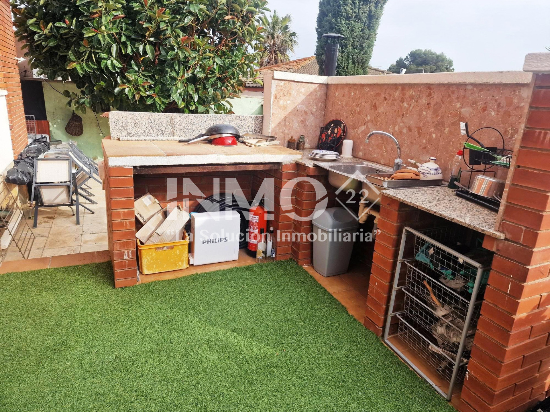 In de buitenruimte vinden we een heerlijke privétuin, ideaal om te ontspannen of momenten te delen met familie en vrienden, met een barbecueruimte en een privézwembad dat uitnodigt om te genieten van het mediterrane klimaat.