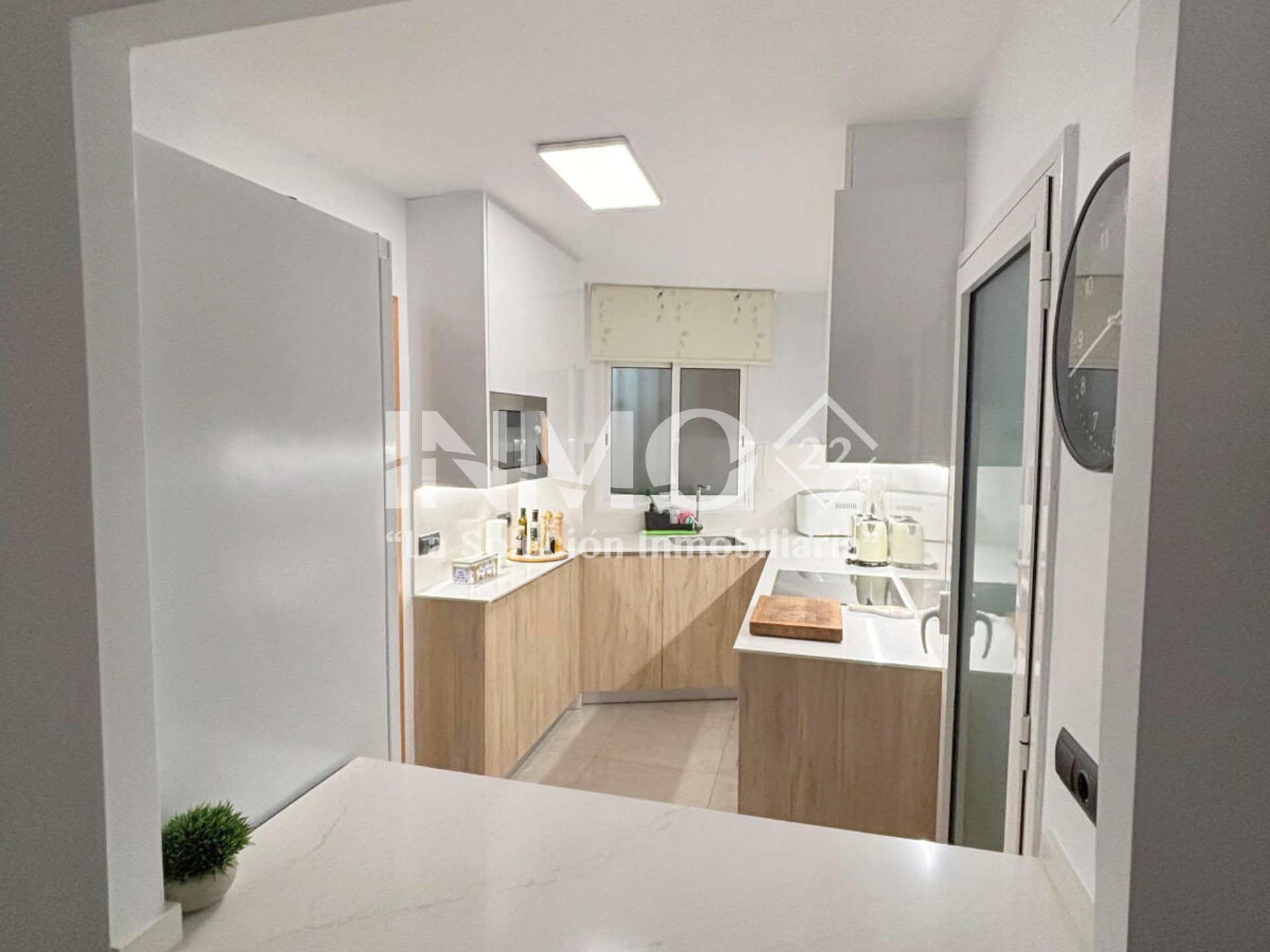 La cuisine américaine, à vitrocéramique, est équipée avec réfrigérateur, micro-ondes, four et lave-vaisselle.