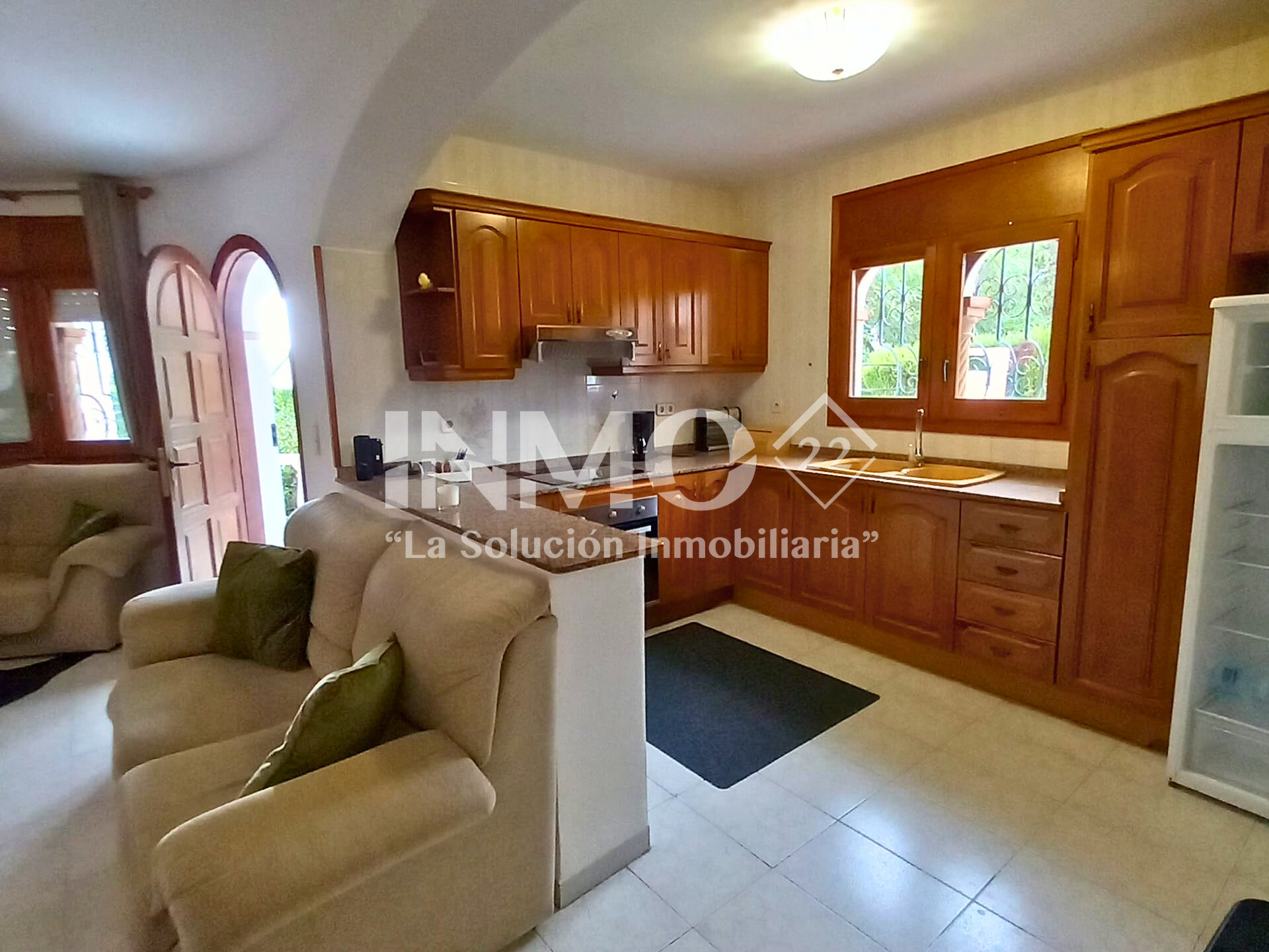 La cuisine américaine, à vitrocéramique, est équipée avec réfrigérateur, micro-ondes, four et congélateur.