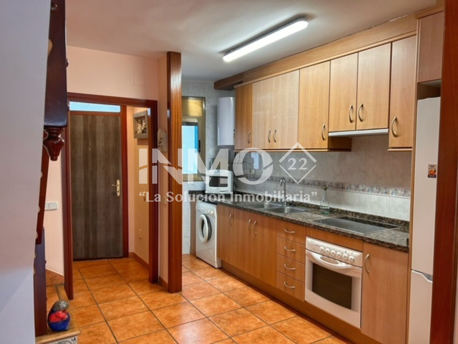 La cuisine américaine, est équipée avec réfrigérateur, micro-ondes et four.