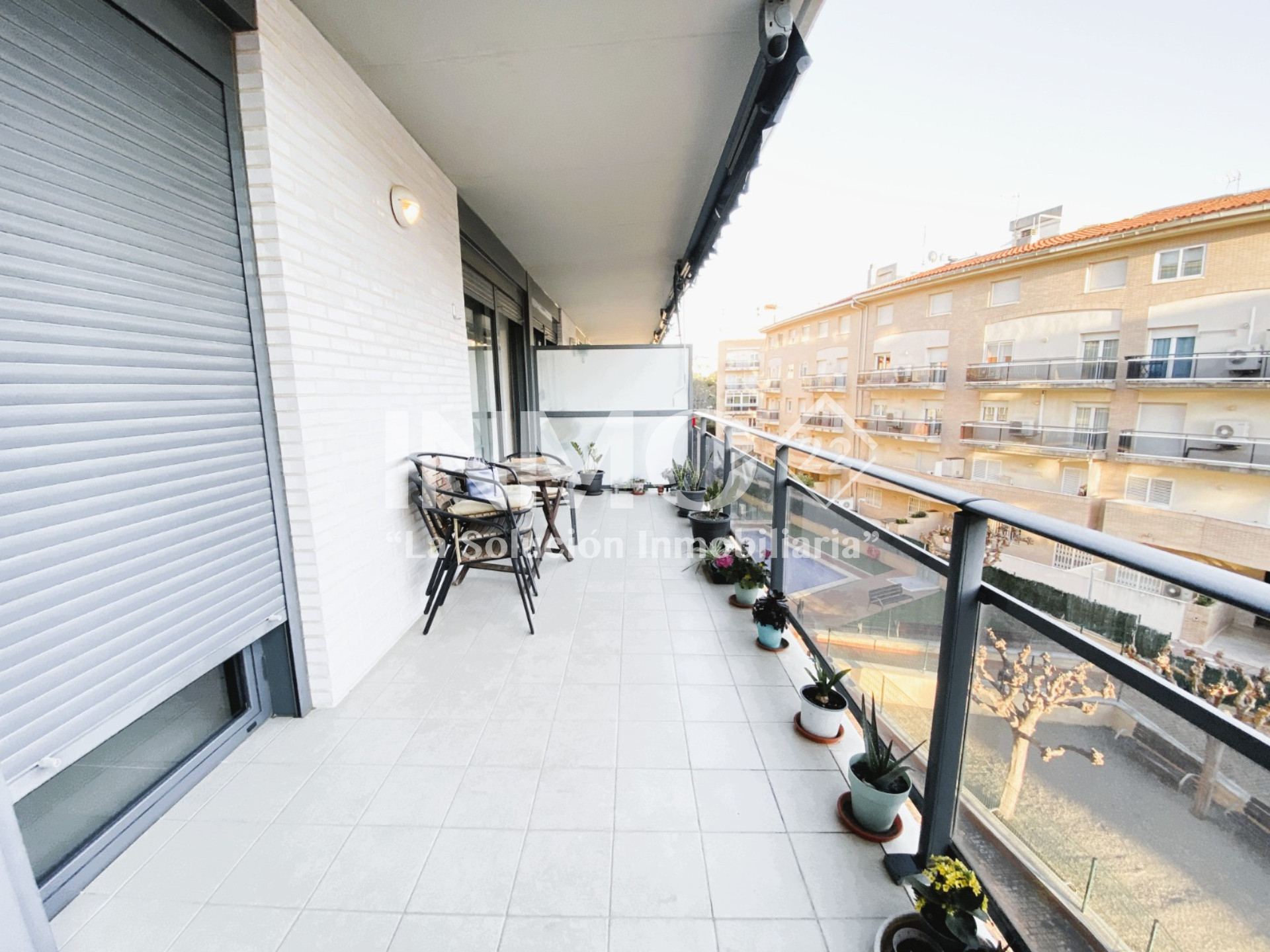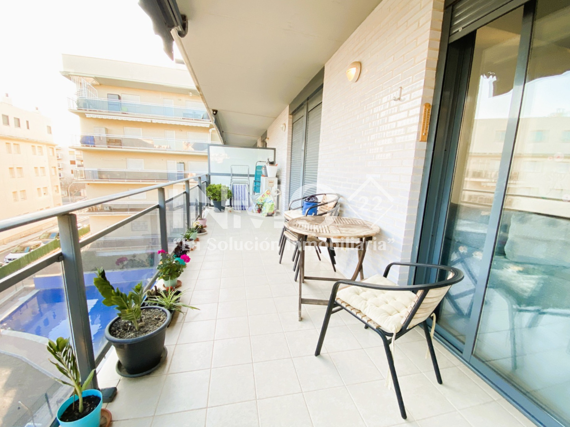 Ha ascensore, terrazza, lavatrice, riscaldamento pompa di calore, aria condizionata in tutte la stanze, piscina in comune, parcheggio coperto in in struttura.